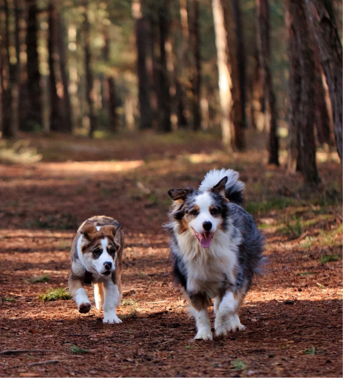 jak wygląda spokojne bycie z drugim psem, będąc koło siebie, penetrując i odkrywając okolicę, niekoniecznie skacząc po sobie i zaczepiając